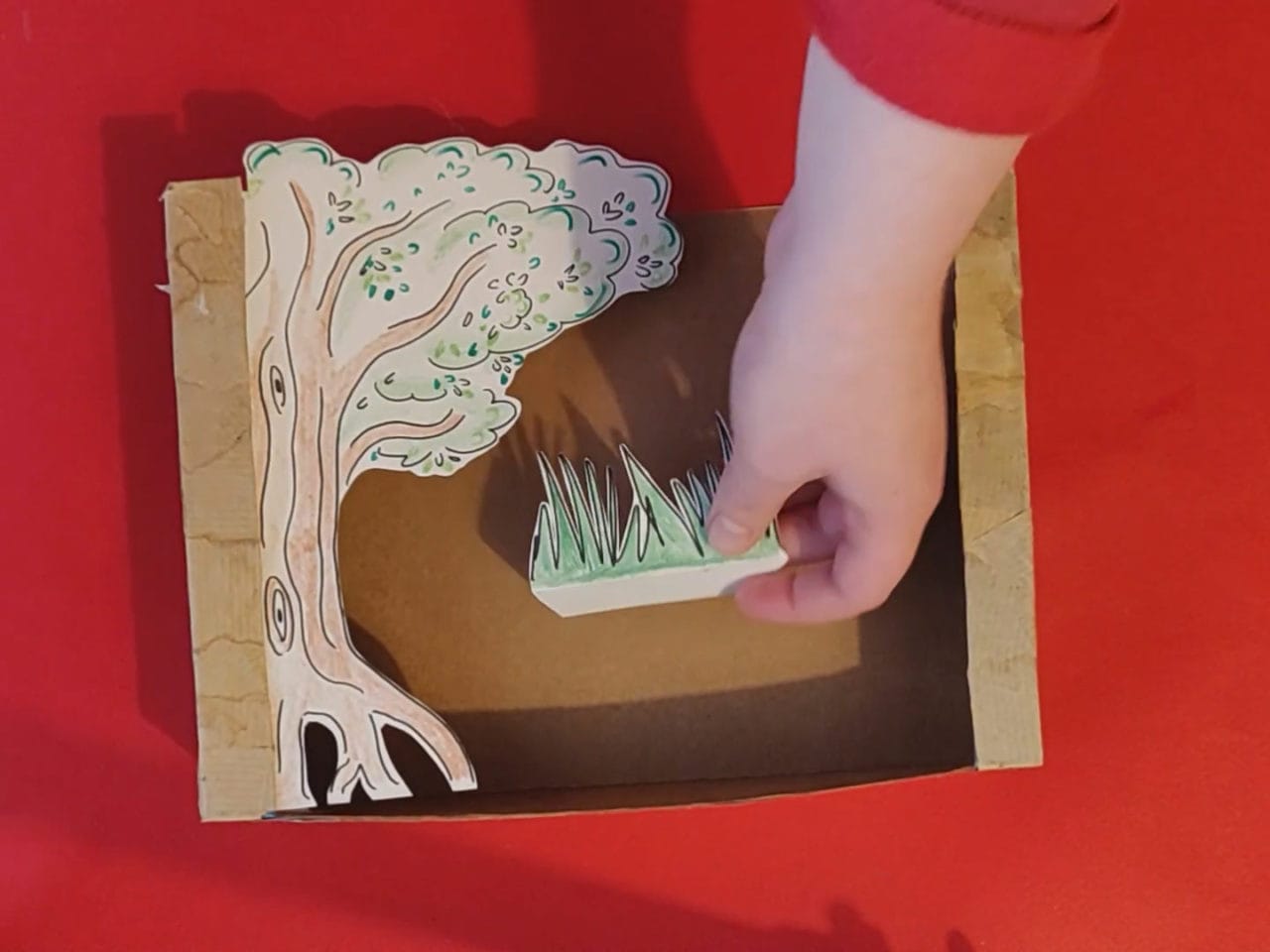 – Stick the tree to the inside of the puppet theatre.